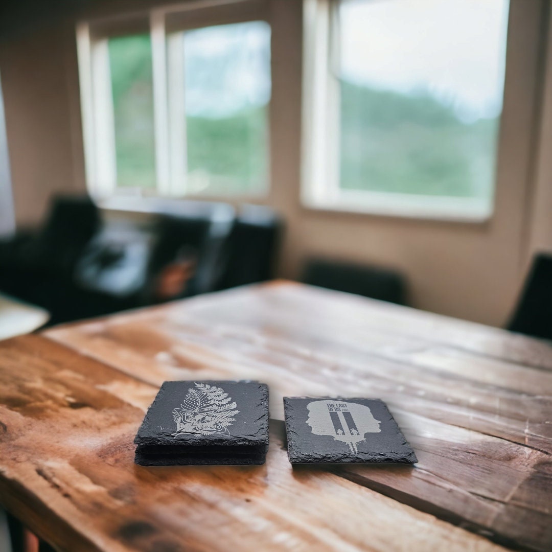 Keep your table safe — unlike the outside world. This 4-piece slate coaster set is laser-engraved with iconic symbols from The Last of Us universe: the Firefly emblem, the Part II logo, and the original game logo. A rugged, stylish nod to your survivalist soul.