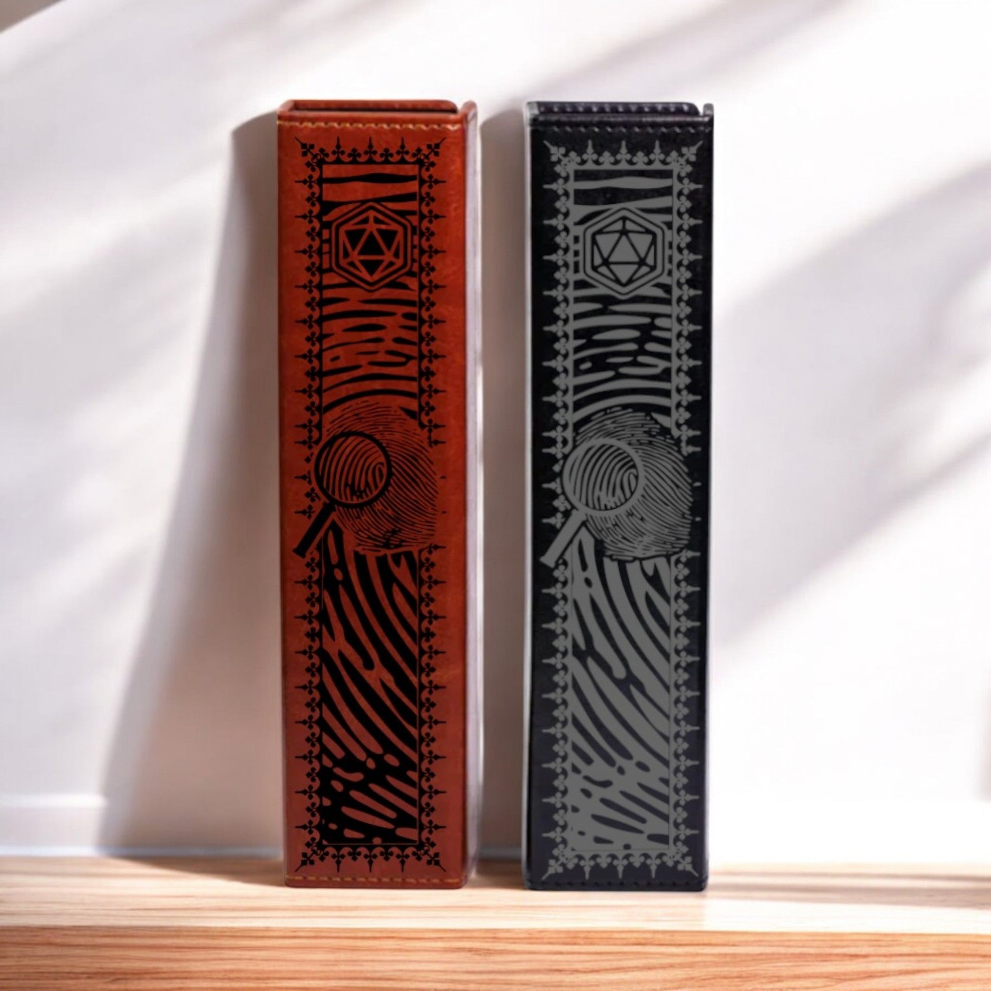 The dice never lie—but people do. Whether you're solving arcane murders, tailing cultists, or just trying to figure out who really stole the loot, this Investigator-themed faux leather dice vault keeps your tools sharp and your secrets sharper.