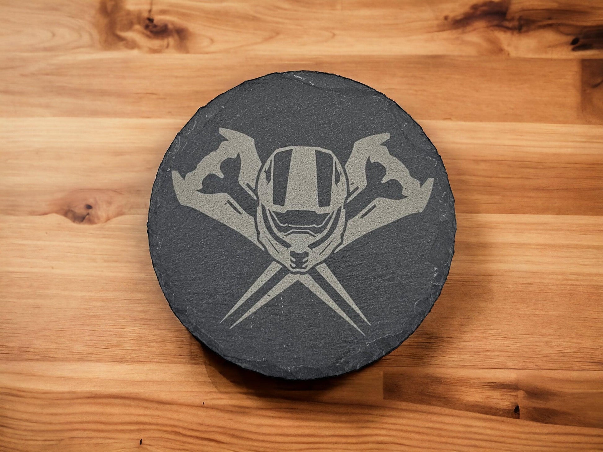 Whether you’re chillin’ in the UNSC barracks or just fragging friends on a Friday night, these Halo-themed slate coasters have your six. Engraved with iconic symbols from the Halo universe—yes, we included the Chief’s signature flair.