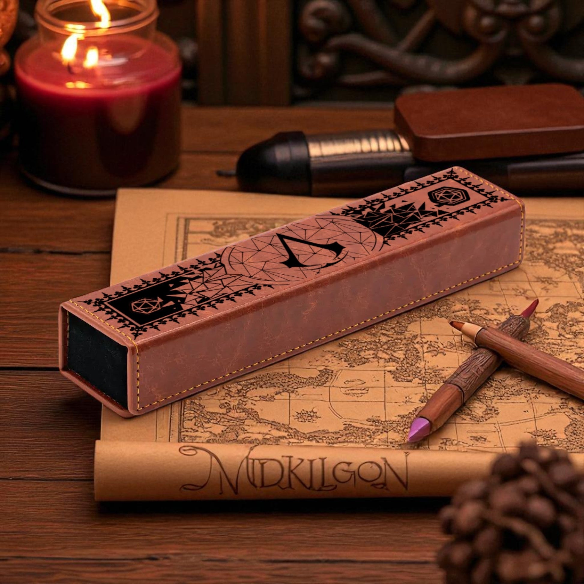 Silent steps. Deadly precision. Irresistible charm. Whether you're picking locks, pockets, or your next target, this Rogue-themed faux leather dice vault is the ideal stash spot for your dice—and your secrets.