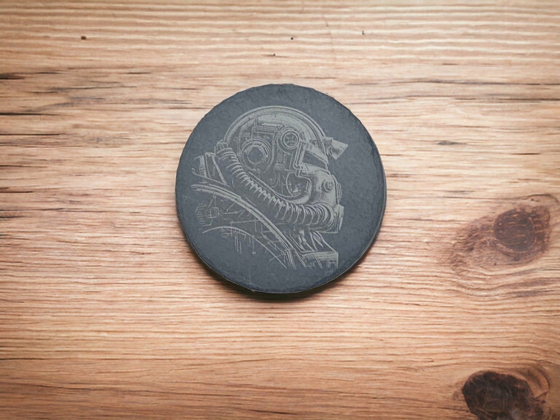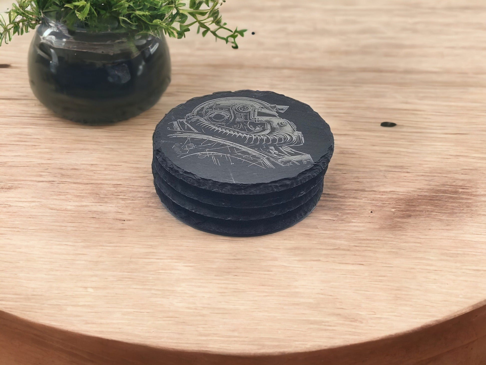 Celebrate the charm of the end times with this engraved 4-piece slate coaster set. Featuring Fallout’s most iconic symbols—Vault Boy, Nuka-Cola, the Power Armor helmet, and Vault-Tec logo—this set is built tougher than a Deathclaw encounter.